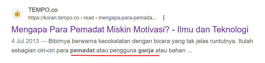 -Sejarah Narkoba di Batavia (Republika, 16 Oktober 2022) -Cannabis Consumption and Prosociality (Scientific Reports, 19 Mei 2022) -Antisocial Personality Disorder as a Risk Factor for Opioid Use (SAGE Journals, 2021)